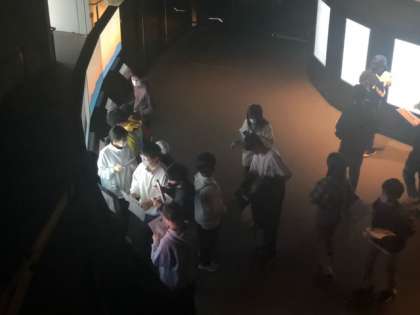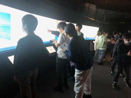 ぐるぐるスロープを回りながら、展示コーナーで富士山について学びます。