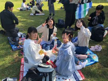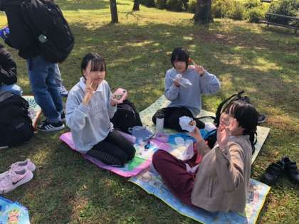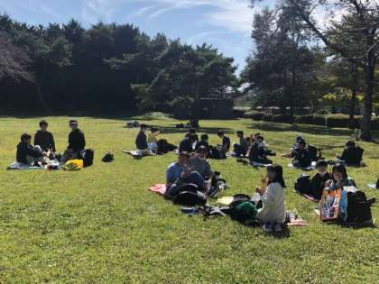 緑の芝生の上で楽しいランチタイムです。これから小林牧場に向かいます。