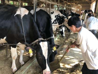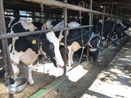 牛舎に移動してきました。想像していたより大きな牛にびっくり!