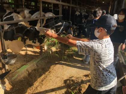 おっかなびっくりしながらも果敢に餌やりにチャレンジ!