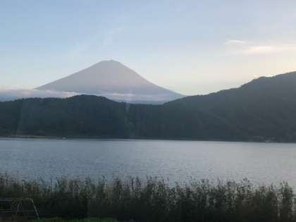 河口湖です。富士山がくっきり見えます。学園に着いて、開園先をおこないました。