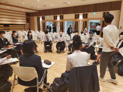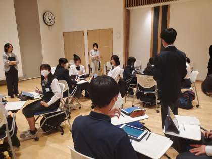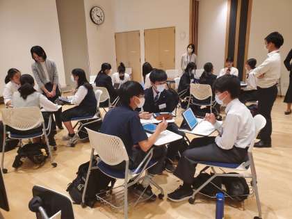 教育総合センターで各校の代表が集まって話をしています。『学校を良くしていこう』という話題を話し合っています。