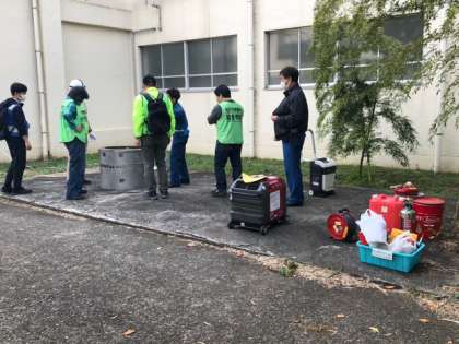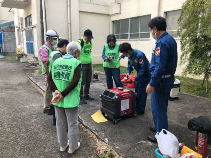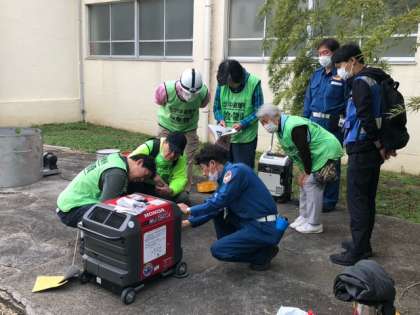 避難所運営訓練本番に向けて 公開日 2023/11/05 更新日 2023/11/05 できごと ?給食物資担当は、自家発電の機械を稼動しています。本訓練は11月19日です。地域の皆さま、奮ってご参加ください!