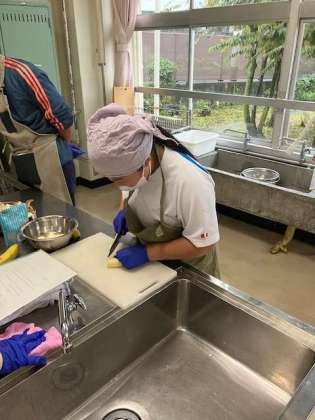 今日の調理実習は先週に引き続き、デミグラスハンバーグ、オニオンスープ、フルーツポンチを作りました。2回目のメニューということもあり、自分たちでどんどんと調理を進めることができています。今日はチーズもトッピングし、美味しくいただくことができました!