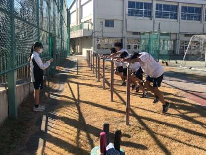 今日から冬休みに入りました。元気に部活動に参加している生徒たちがいます。陸上部は走り込みと基礎トレーニングをしています。これがまた結構厳しい!でも頑張っています!