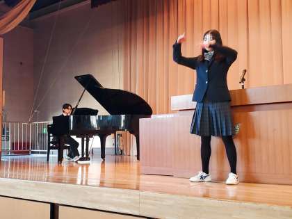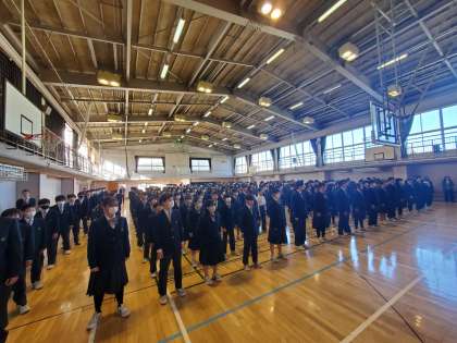 始業式の校歌斉唱の様子です。今年も元気いっぱい歌います。