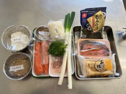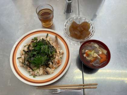今日のメニューは、鮭のちらし寿司、けんちん汁、黒糖ぐずもちでした!