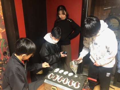 ?粉を薄く伸ばして、餡を入れて形を整えます。