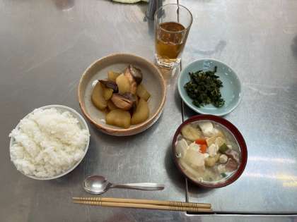 本日のメニューは、ぶり大根、豚汁、パンナコッタです!大根を煮るのに時間を要しましたが、美味しくできました!