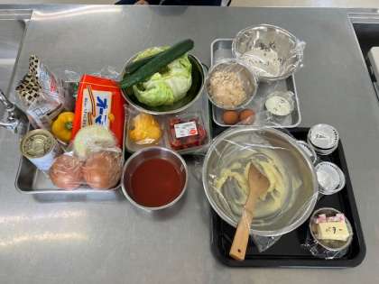 本日のメニューは、ナポリタン、サラダ、サワーカップケーキでした! おいしく仕上がりました!