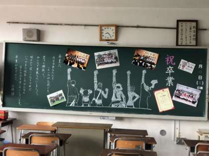 ?卒業式の朝。教室には卒業式までのカウントダウンカレンダー学校掲示され、黒板には担任の思いが散りばめられています。