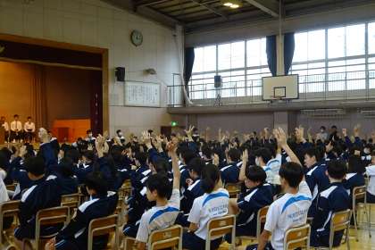 それぞれの代表が礼儀正しく、立派な態度で説明していました。そして、聞く生徒もしっかりと聞いていて、わからないところに対して質問や要望もしていました。