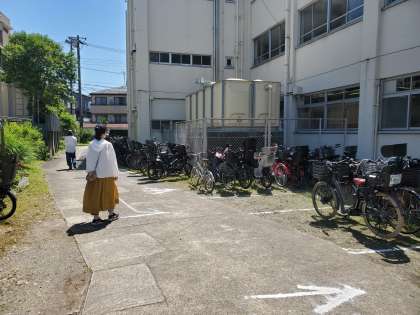 おやじの会とPTAの皆さんで、来校者の自転車を整理してくださっています。ありがとうございます。