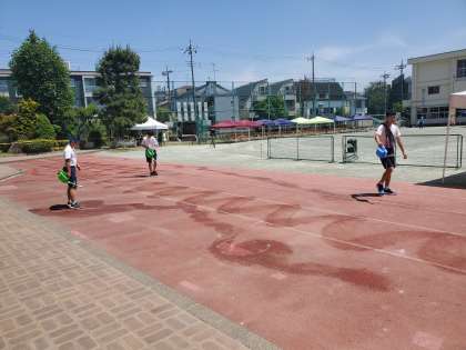 保護者席に有志でをしています。再開まであと15分です。