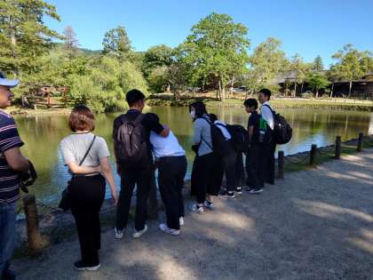 次はどこに行くんだっけ? ときわのみんなは、池の中に大きな鯉を見つけた?