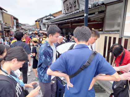 清水寺でチェックを受けています。ちょっとつかれたかな?