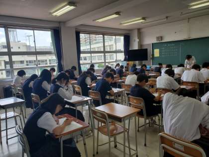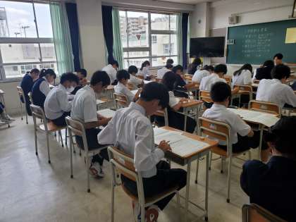 期末考査2日目です。本日は国語、数学、保健体育の3教科です。みんな真剣に取り組んでいます、