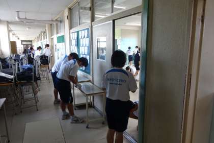 普段の清掃ではできない箇所を中心に学期末に大掃除です。