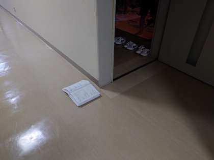 上履きがきちんと揃えられています。そして、しおりを廊下に出すことも忘れていません。