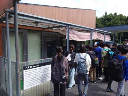 お話を聞いたあと、施設の見学です。子犬棟のところでかわいい〜と声が多く聞こえました。