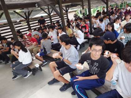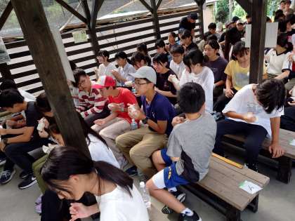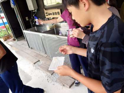 バター作りは生クリームをたくさんふります。大小ありますが、みんなうまくできました。