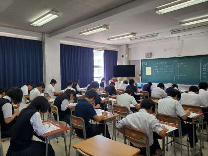 最後の英語のテストです。集中しています。
