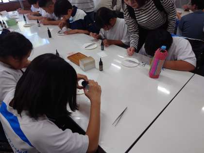 河口湖フィールドセンターに到着。キーホルダー作りに挑戦です。