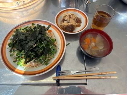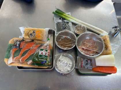 本日のメニューは、鮭のちらし寿司、けんちん汁、黒糖くずもちでした!
