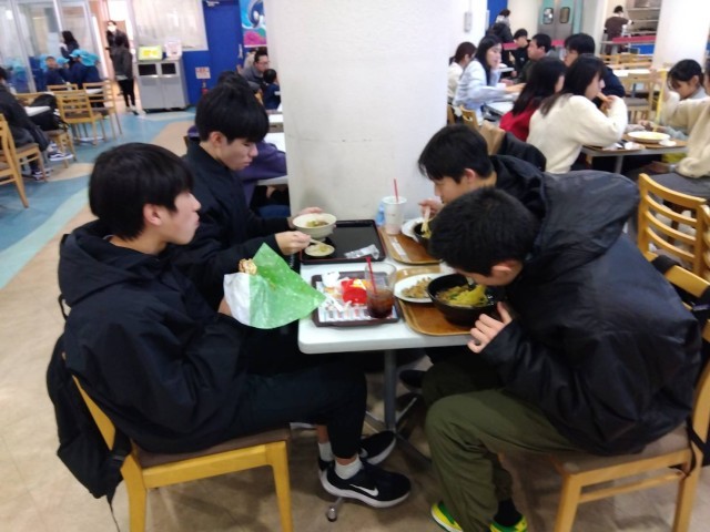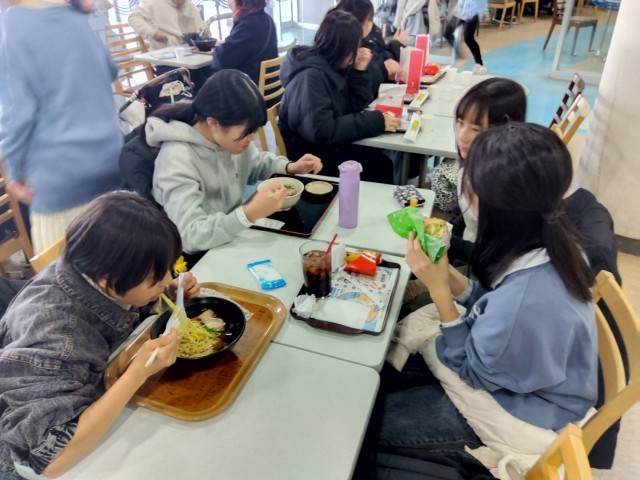 混雑するのを想定して、早めに昼食をとる班もいくつかいました。