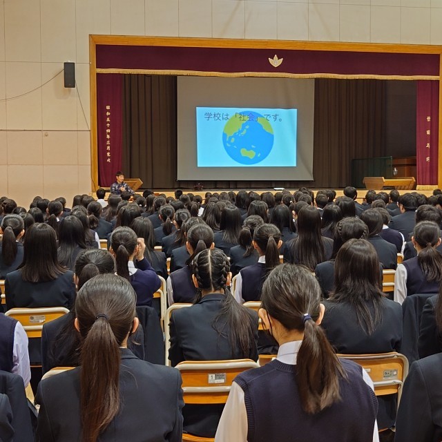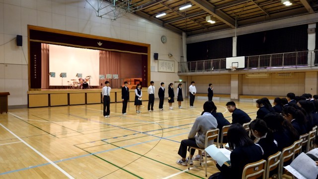 基本的な学校生活のルールやマナーについて話しました。そして、生徒会、委員会についてそれぞれのリーダーが説明してくれました。
