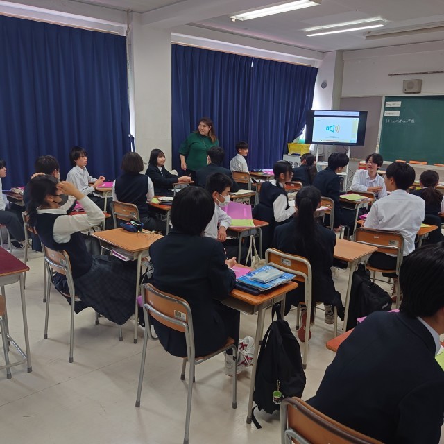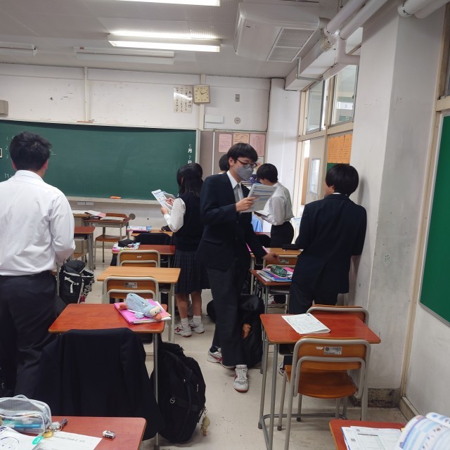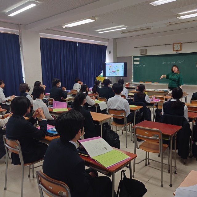 3年英語では英語を聞き、ペアで話す活動をしていました。