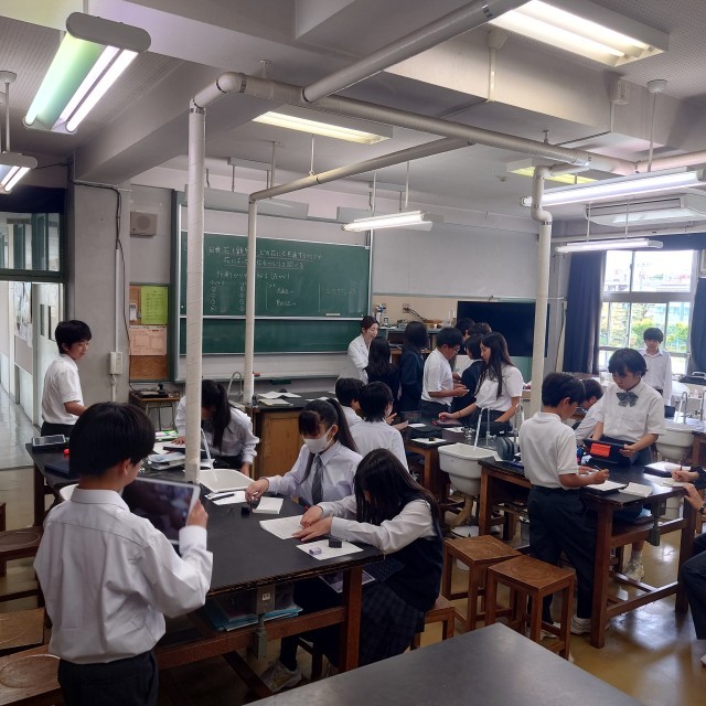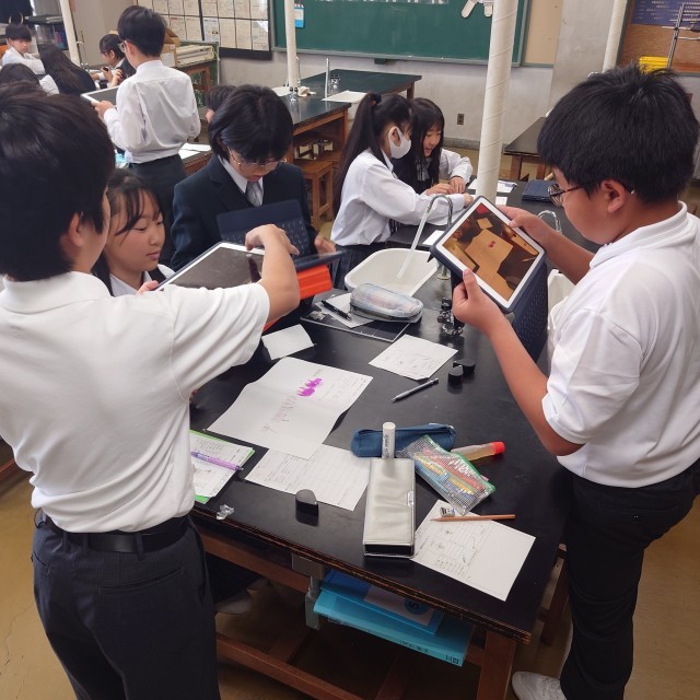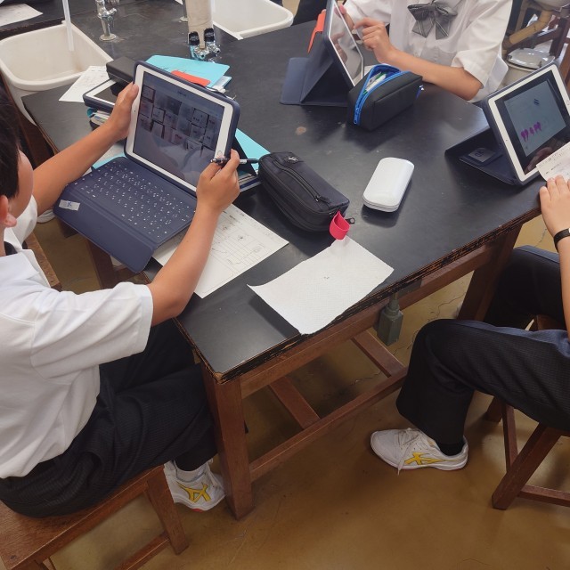 植物(花)の観察にグループで取り組んでいました。タブレットも活用し、ロイロノートで共有していました。
