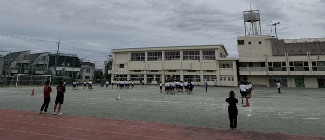 本日は曇り空、気温も高くはありませんが、校庭では元気な声を出し、運動会練習に取り組む生徒たちの姿がありました。