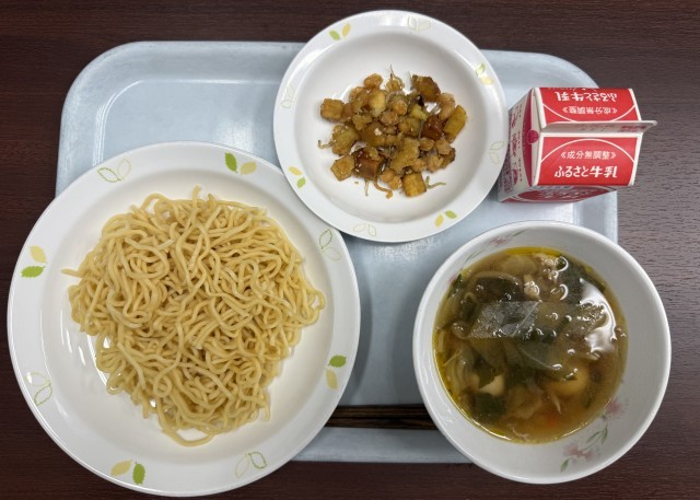 つけしょうゆラーメン 大豆とじゃこの甘辛揚げ 牛乳