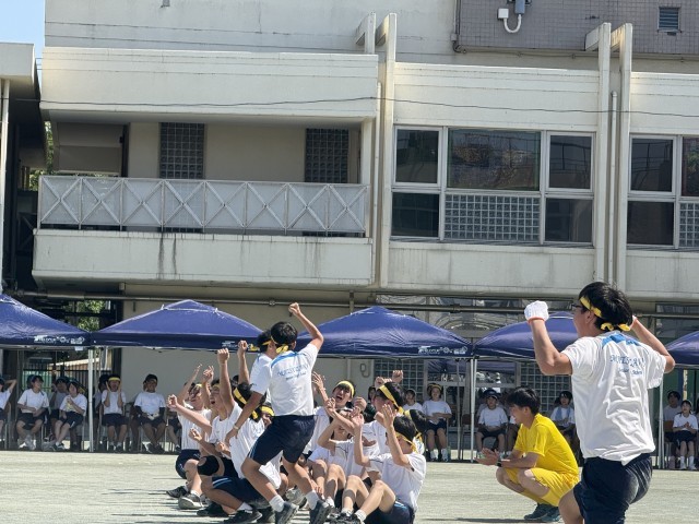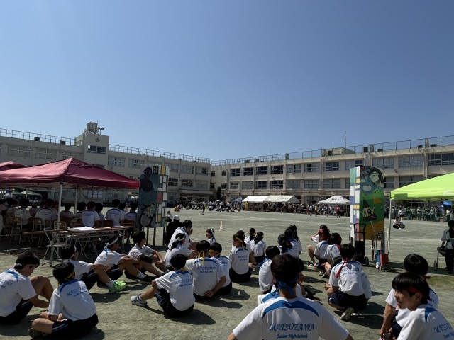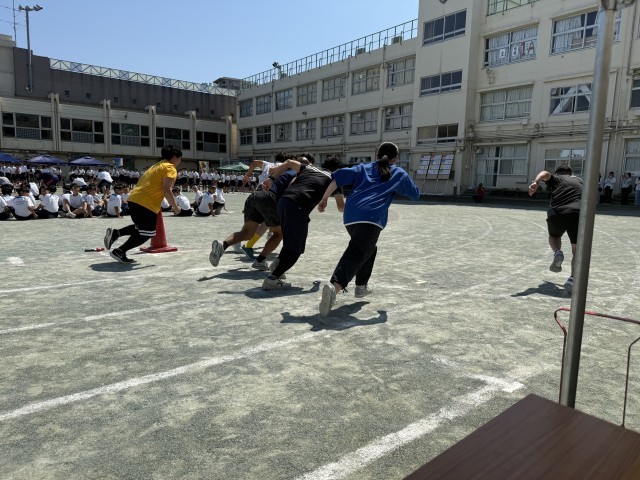 午後の部は3年生のダンスから始まり、1年生の台風の目、2年生の綱引き、3年生の大縄跳び、学級代表リレー、クラスの団結、協力が試される競技が続きました。