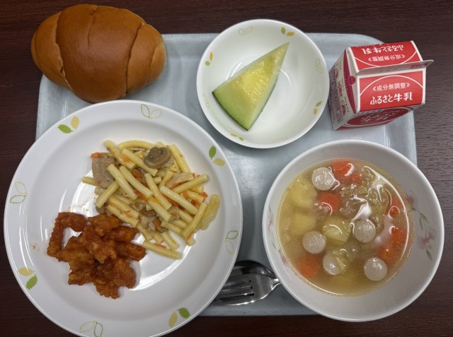 バターロールパン いかのケチャップ和え マカロニソテー ポトフ くだもの 牛乳