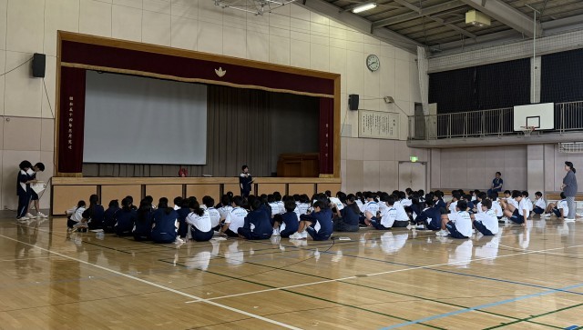 明日からの移動教室に備えて、体育館にて前日指導が行われました。
