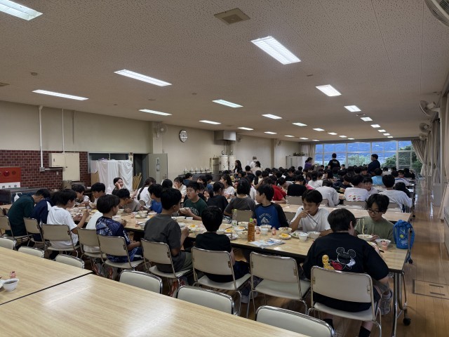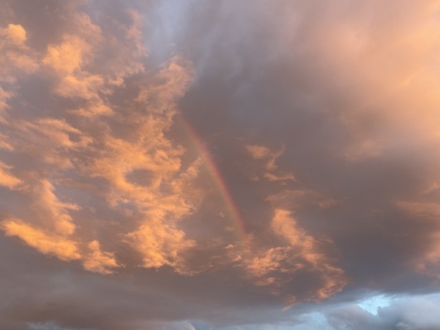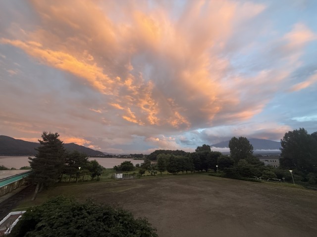 夕食後、部屋に戻って窓の外を見ると、美しい夕空に虹が架かっていました。発見した生徒達が「先生!虹が出てます!」と、急いで教えてくれました。