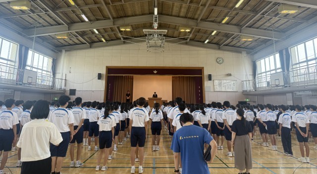 本日より3週間、本校にて実習を行う教育実習生2名から緊張の面持ちで全校生徒に挨拶がありました。
