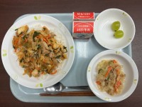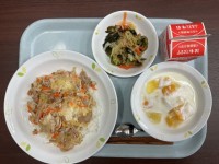 豚キムチ丼 春雨サラダ くだもの 牛乳