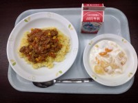 ひよこ豆のカレー フルーツのヨーグルトがけ 牛乳※明日から期末考査で3日間給食あ...