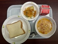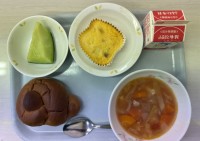 黒砂糖パン チーズ入りオムレツ ミネストローネ くだもの(メロン) 牛乳