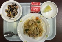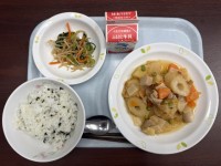 ゆかりごはん 鶏肉とじゃがいものうま煮 野菜ののり和え 牛乳