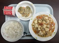 ごま入りごはん 西湖豆腐(シーホーどうふ) 大根とじゃこのカリカリサラダ 牛乳