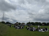 ミルクランドにて。クラスごとに記念撮影をした後、レジャーシートを敷いて、学園で作...