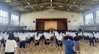 体育館にて全校朝礼を行いました。本日より3週間、本校にて実習を行う教育実習生2名...