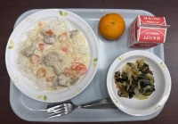 エビとチキンのクリームライス わかめサラダ くだもの(冷凍みかん) 牛乳