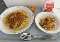 スパゲッティ地中海ソース イタリアンサラダ くだもの(冷凍みかん) 牛乳