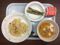 チャーハン ししゃものから揚げ ピリ辛みそスープ 牛乳