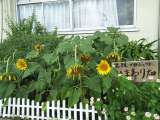 生徒会が校庭に植えたひまわりがボランティアの人たちのお世話によって、ほぼ満開に ...